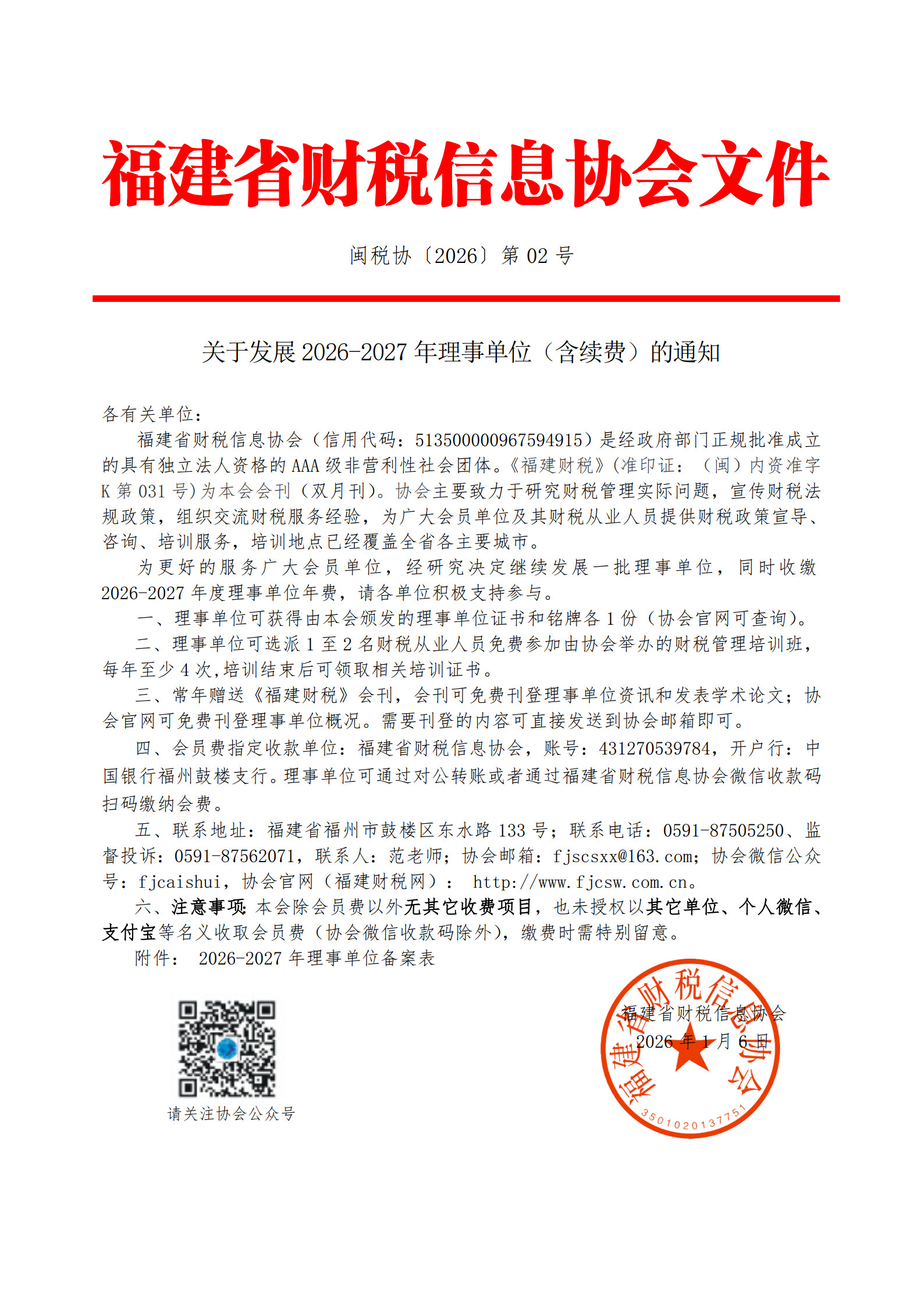关于发展2026-2027年理事单位(含续费)的通知