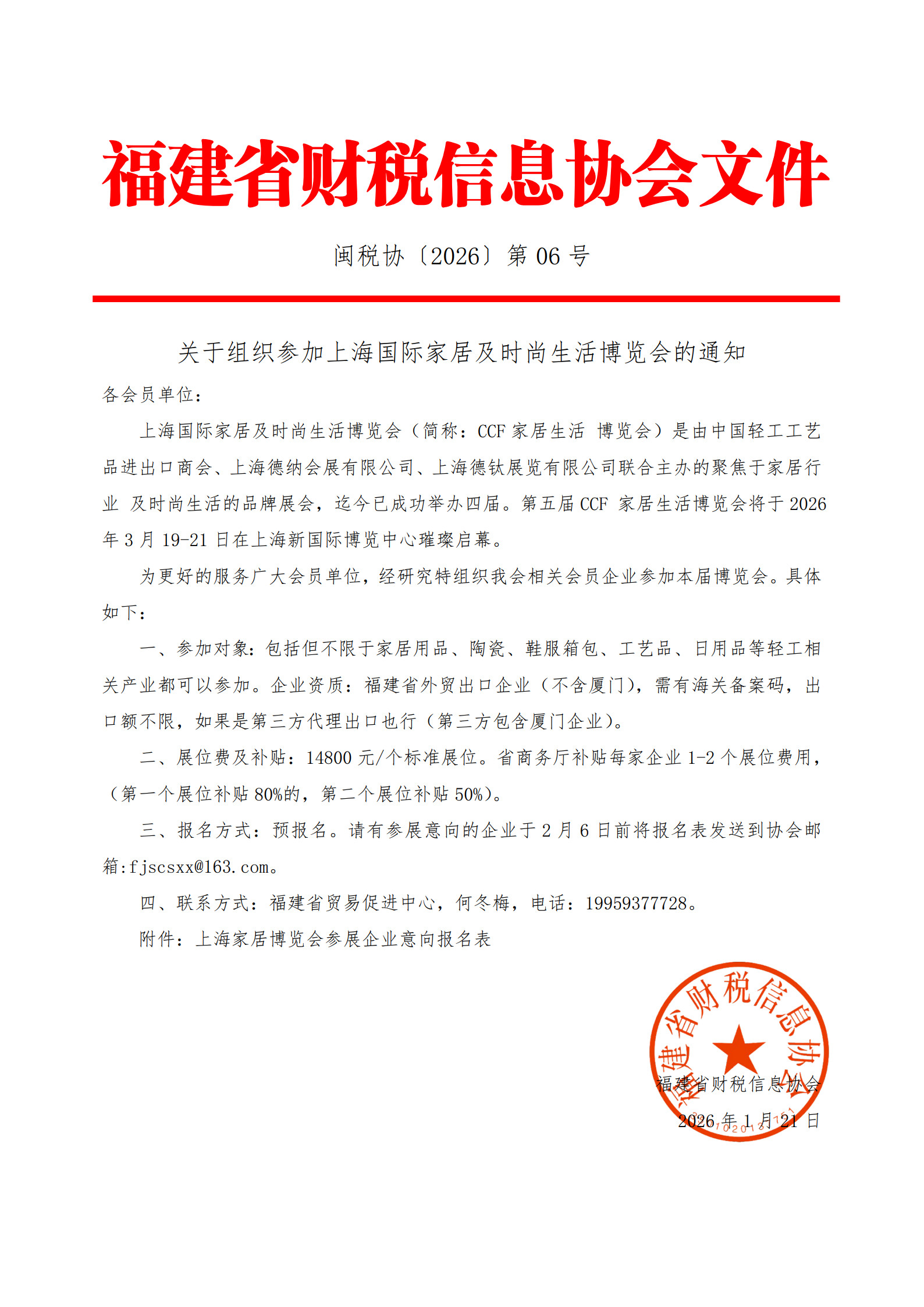 关于组织参加上海国际家居及时尚生活博览会的通知
